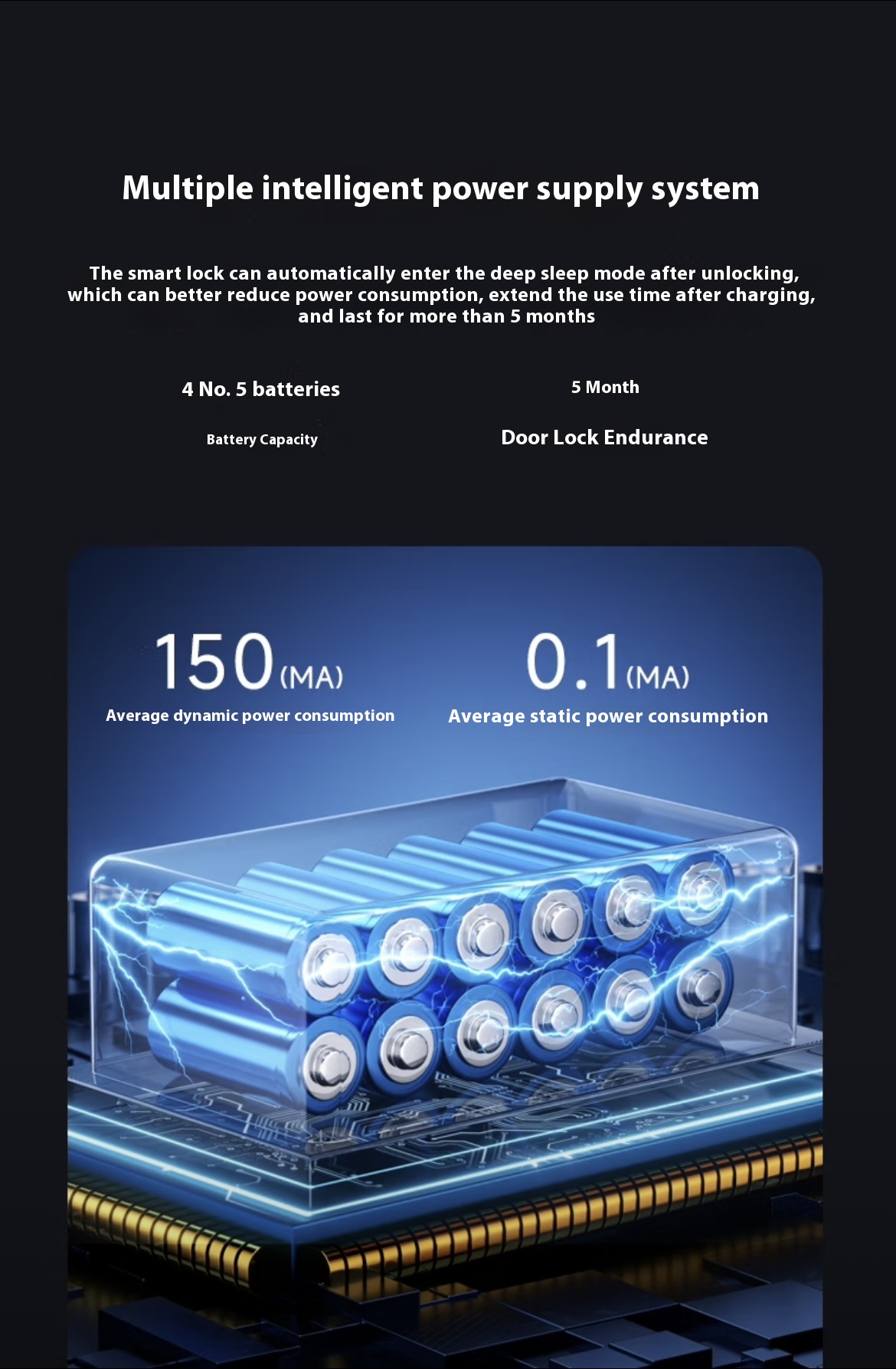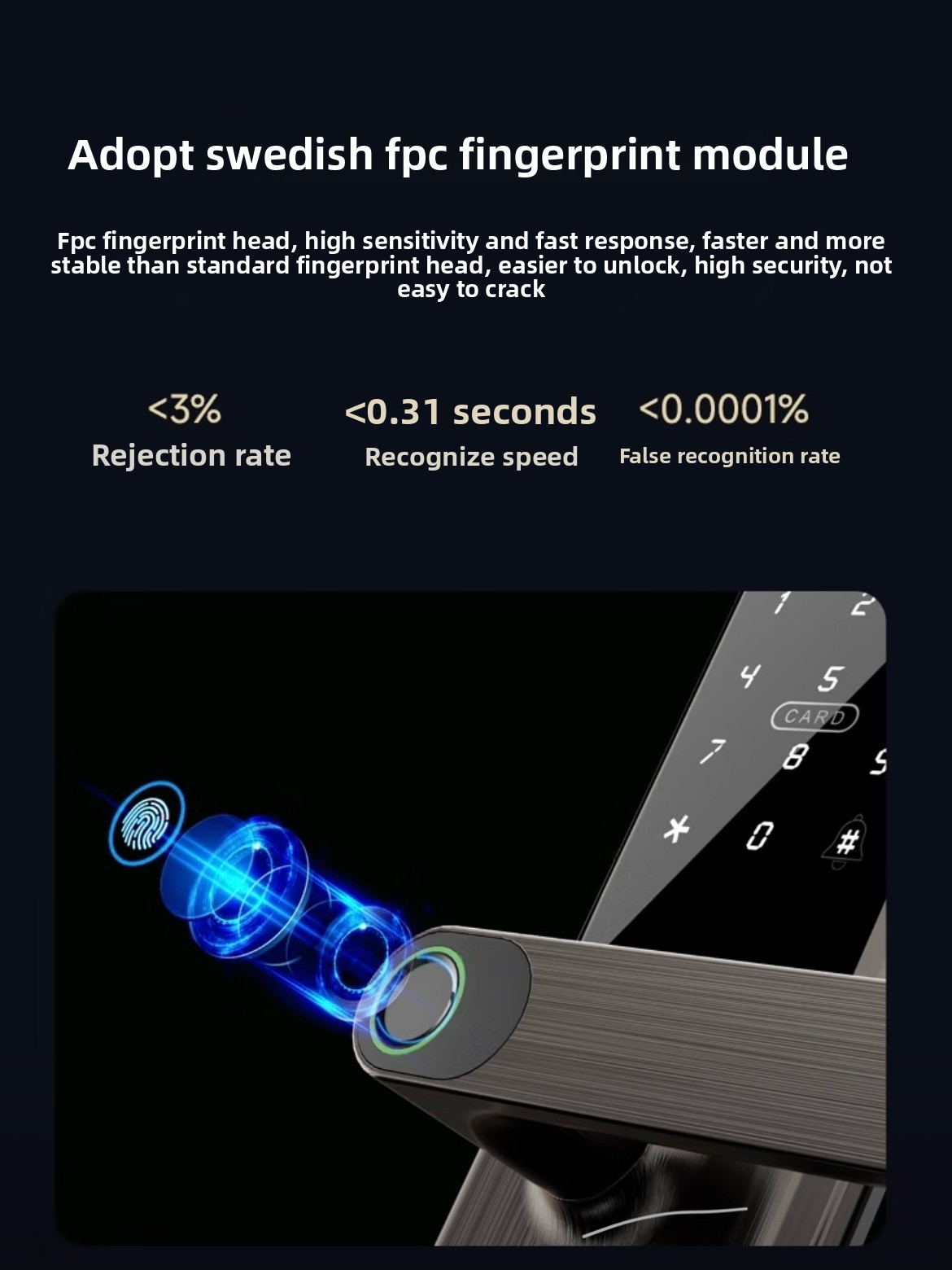 Feature highlights: The Sharp A3-B Smart WiFi Network Electronic Lock offers advanced security with Grade C lock cylinder, fingerprint anti-theft technology, and Tuya App control. Designed for glass, wood, aluminum, and stainless steel doors, it features a durable aluminum alloy build and cloud data storage for reliable access management.